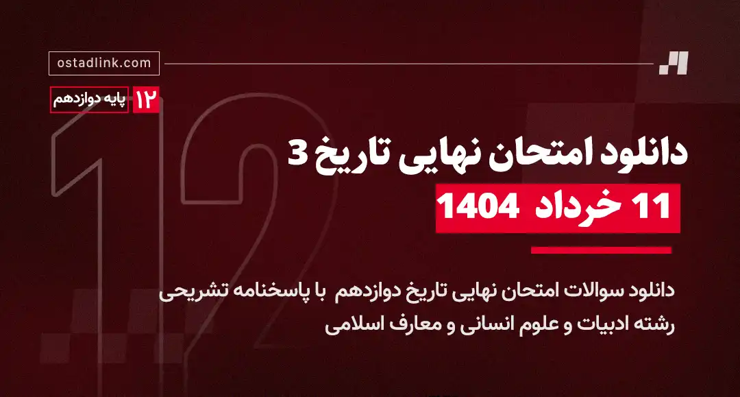 دانلود سوالات امتحان نهایی تاریخ 3 دوازدهم رشته ادبیات و علوم انسانی و معارف اسلامی خرداد 1404 همراه با پاسخنامه تشریحی + معرفی بهترین معلم خصوصی و تدریس خصوصی ویژه امتحان نهایی تاریخ