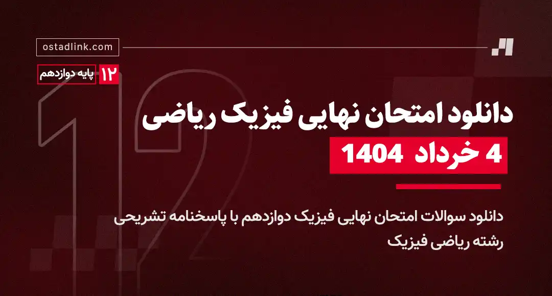 برای دانلود سوالات امتحان نهایی فیزیک دوازدهم ریاضی خرداد 1404 ( فیزیک 3 رشته ریاضی فیزیک ) همراه با پاسخنامه تشریحی، روی دانلود، کلیک نمایید.